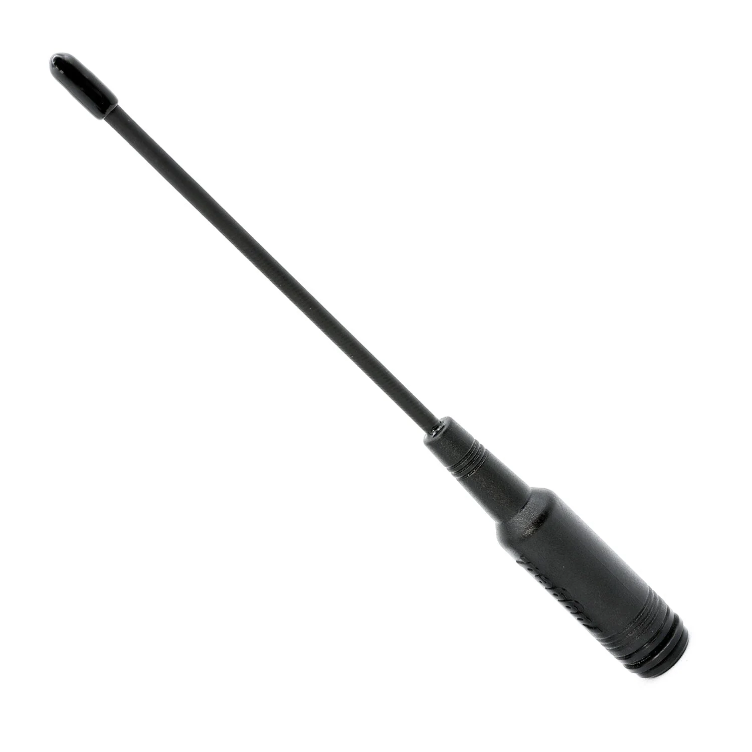 ¡No se requiere conector BNC adicional! Esta antena sin plano de tierra es lÃder de largo alcance para radios portátiles. Simplemente se atornilla al soporte de antena existente a través del conector SMA.